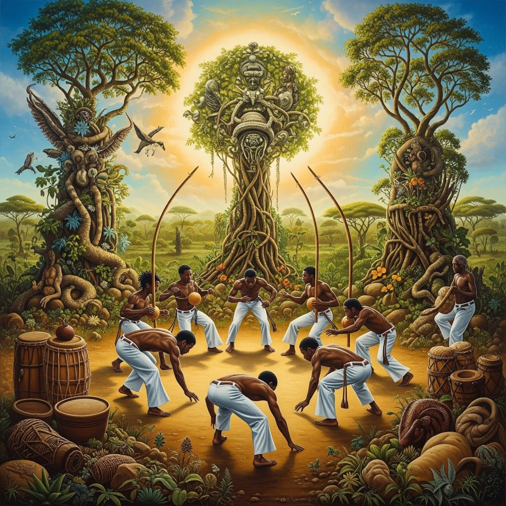 Therefore, Capoeira Angola is far more than a physical practice; it is a profound and vibrant expression of humanity’s intrinsic relationship with the earth. It powerfully emphasizes the critical importance of balance, both within oneself and in one’s interaction with the environment. It instills a deep sense of respect for the natural world and underscores the fundamental importance of nurturing and preserving our natural environment, reminding us that we are an inseparable part of a larger, living ecosystem. Through its movements, music, and philosophy, Capoeira Angola invites practitioners and observers alike to reconnect with the earth, fostering a deeper appreciation for its beauty, power, and the delicate balance that sustains all life.