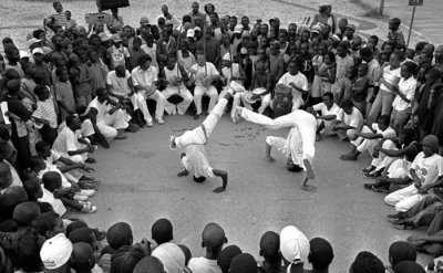 This form is called Capoeira Angola. It is a deceptive game of entrapment that relies on cunning and guile. Its movements tend to be very close to the ground and rely on strong balance and positioning.
