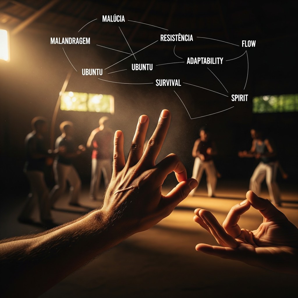 In Capoeira, the reliance on brute muscular force is discouraged. The entire body should be stretched and extended, leaving no room for this superficial form of energy. The emphasis is on leverage, momentum, and body mechanics rather than sheer strength.