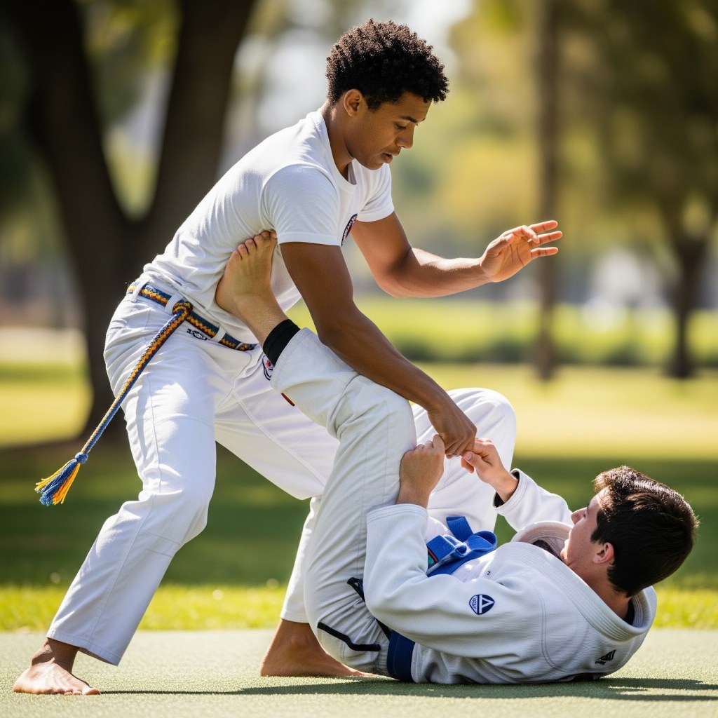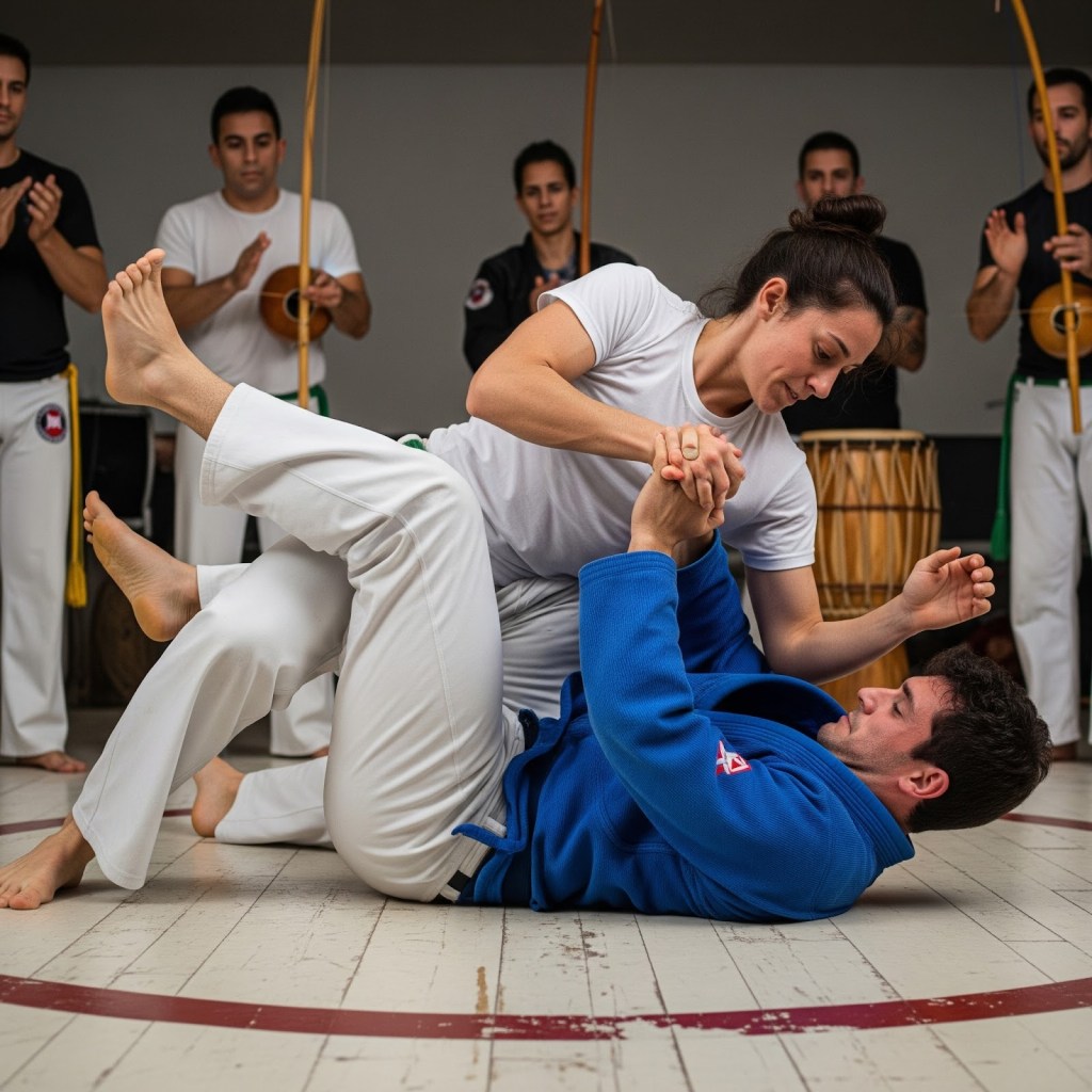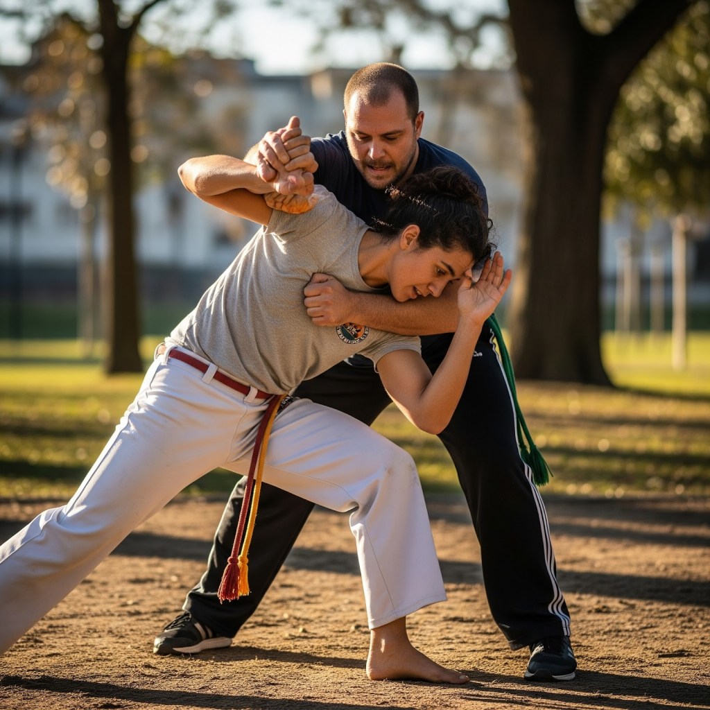 - Cross-Training as a Force Multiplier: This is arguably the most critical adaptation for any Capoeirista serious about self-defense. Integrating elements from other complementary martial arts directly addresses Capoeira’s inherent gaps. Training in boxing or Muay Thai can provide a practitioner with powerful, direct hand strikes (punches, hooks, uppercuts), elbow techniques, and essential clinch work, significantly enhancing their upper body offense and defense. Similarly, studying Brazilian Jiu-Jitsu or wrestling can equip a Capoeirista with crucial grappling skills, effective takedown defense, ground control, and submission techniques. This strategic cross-training transforms potential weaknesses into a more comprehensive and well-rounded defensive arsenal, allowing the Capoeirista to fluidly transition between ranges and scenarios.