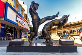 The Penha neighborhood received the Homens de Fibra monument on October 30, 2021, in honor of the “giant figures of Rio de Janeiro’s capoeira,” Mestres Touro and Dentinho.