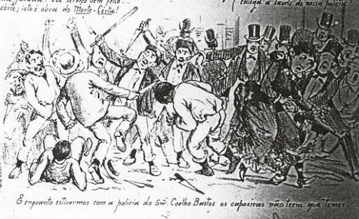 On the night of February 22, 1883, the soldier José Raimundo de Souza, standing patrol in the Baixa dos Sapateiros, went to arrest the stevedore Celestino, author of a major conflict on that street, from whom he received a ‘cabeçada’ that caused him almost instant death.